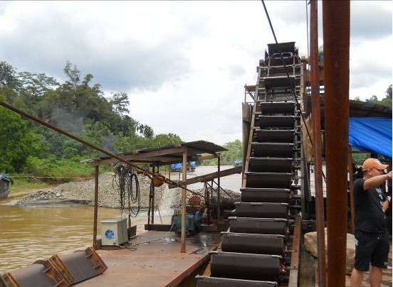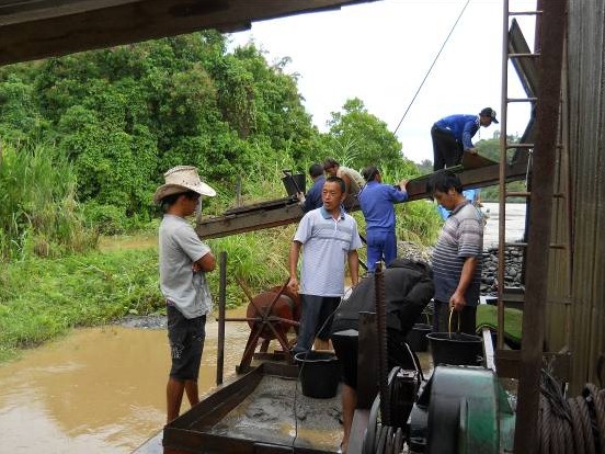 河沙中沙金富集一般是用淘金船或旱地淘金機,沙金富集系統目前常用的有固定淘金氈溜槽、鼓動(dòng)式溜槽、擋邊皮帶式自動(dòng)洗選機、淘金離心機等。