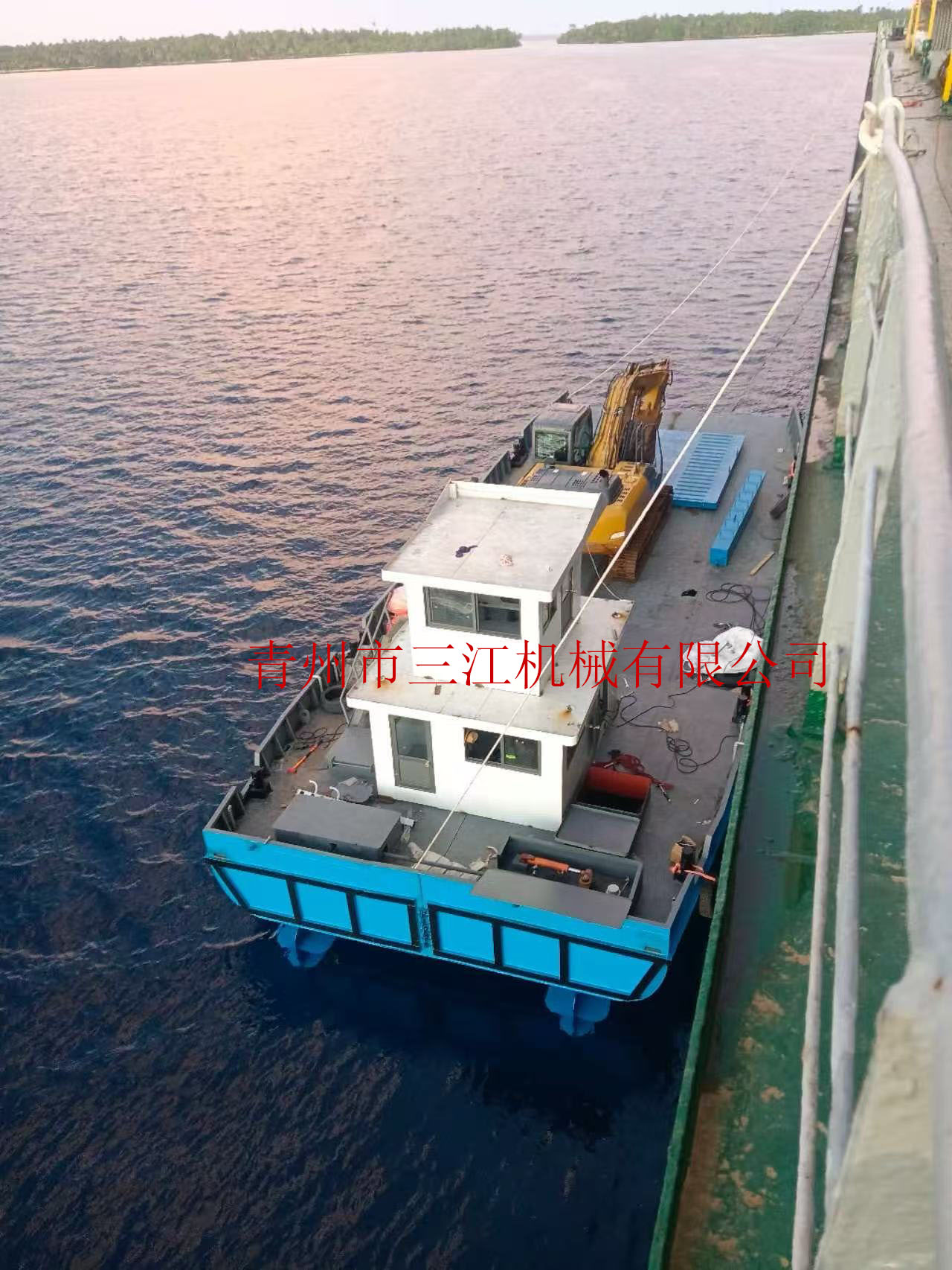 此項目所用接駁船舶和沉箱碼頭,于2024年年底開(kāi)工,用了60多天制造調試完成并于2025年4月份運抵現場(chǎng)。經(jīng)過(guò)我公司技術(shù)人員的現場(chǎng)拼裝調試、完全達到施工要求。目前全部物料已經(jīng)卸載完畢,圓滿(mǎn)完成中鐵項目部的要求,開(kāi)創(chuàng )了全球首次駁船海上拼裝的先例。