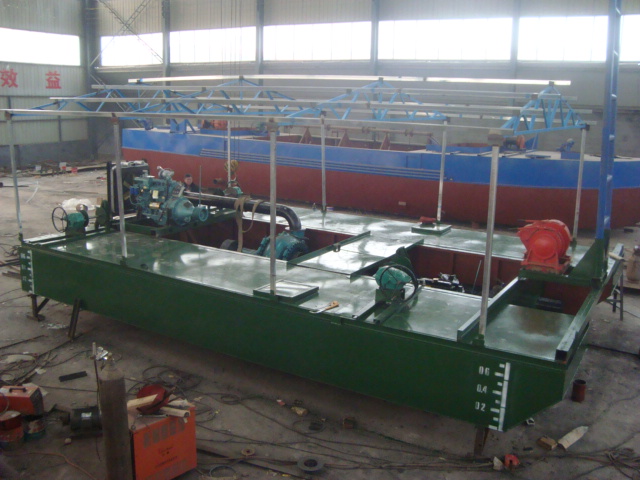 本設備為三體組裝式抽沙船,拆裝方便,整體尺寸都是按照集裝箱空間體積設計制造的(整個(gè)設備能裝入一個(gè)40尺的超高柜),有效節省了海運費,便于國際間長(cháng)途運輸。抽砂泵使用了國內##的石家莊大唐泵業(yè)有限公司的合金耐磨疏浚泵,葉輪使用壽命長(cháng)(1年以上),大大降低了設備的維修率。主動(dòng)力采用的是濰柴BL6113AZLG柴油機,動(dòng)力強勁,操控自如。主機艙部分采用了防雨棚設計,增加了操作人員的舒適度,也有效加強了柴油機等的防雨防銹。