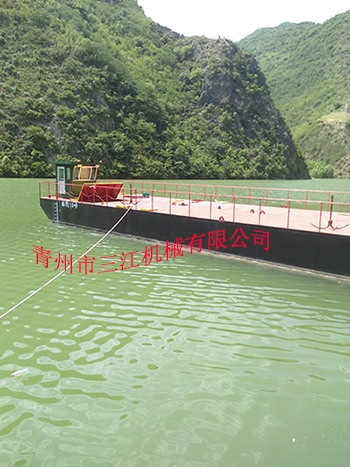 本設備為自航鋼質(zhì)分體式平板駁,分體后可用兩臺半掛車(chē)公路運輸,運達目的地后經(jīng)過(guò)快速組裝后形成作業(yè)能力。也可以公路運輸至港口,裝入散貨船長(cháng)途海運至非洲、東南亞等##,組裝使用。本設備滿(mǎn)載吃水深度1.15米,適用于內陸河道特別是淺水域的砂石、雜貨運輸,也可